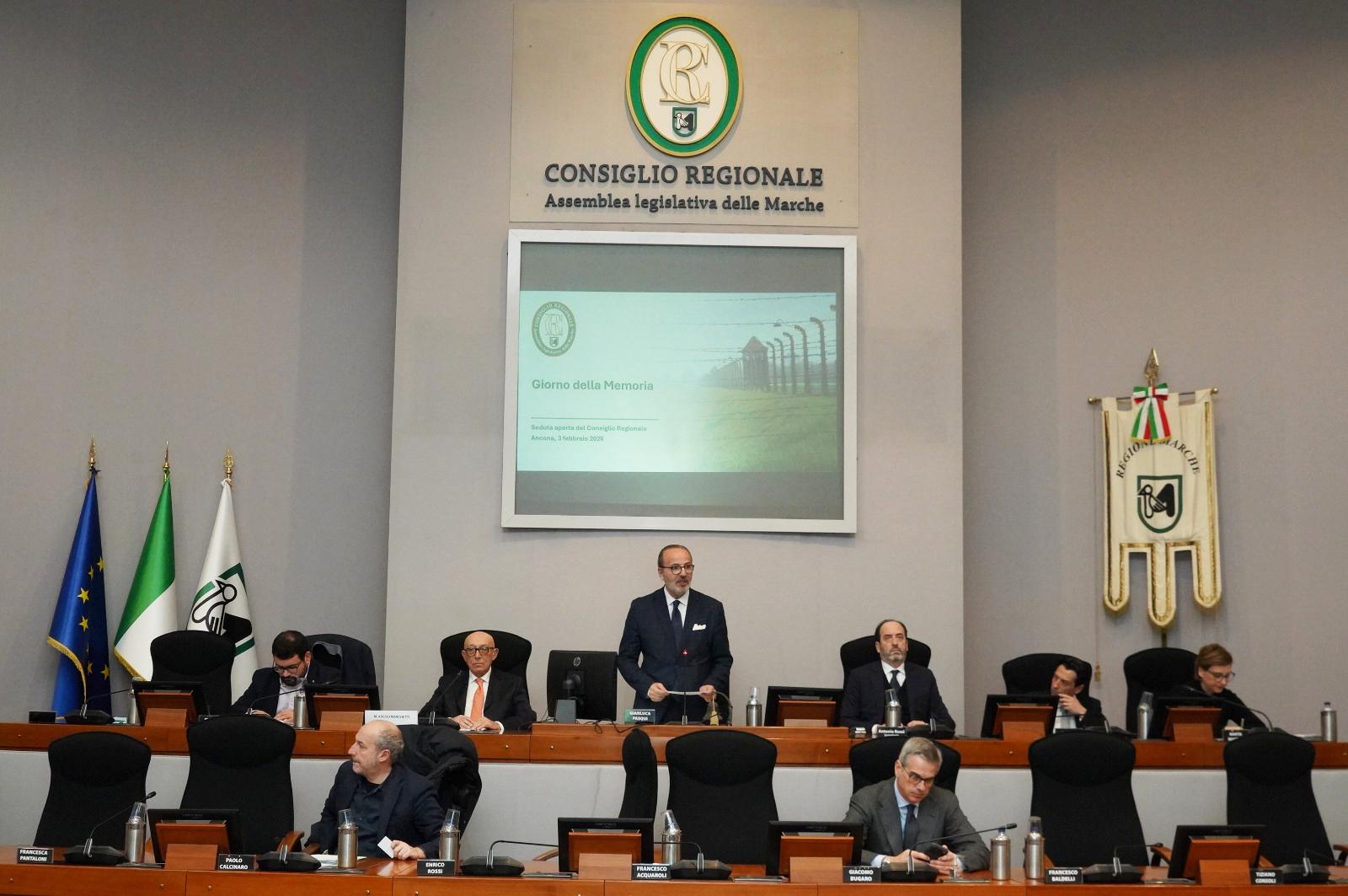 La seduta è proseguita con gli interventi dei rappresentanti delle istituzioni, del mondo associativo e culturale: Marco Ascoli Marchetti, Presidente della Comunità Ebraica di Ancona, Donatella D’Amico, Direttore Generale dell’Ufficio Scolastico regionale per le Marche, Lorenzo Fiordelmondo, Vicepresidente di ANCI Marche, e Riccardo Piccioni, Vicepresidente dell’Istituto Storia Marche. Hanno inoltre portato il loro contributo Luca Fraternale, Presidente ANPI Pesaro, Clara Ferranti, della Rete Universitaria per il Giorno della Memoria, e Silvana Giaccaglia, Presidente di ANMIG Marche.
