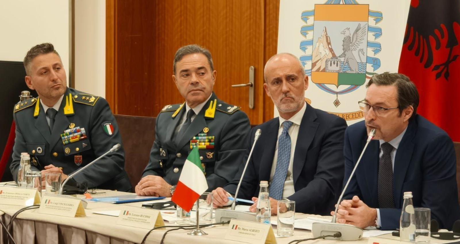 Dopo l’intervento del Direttore Generale della Polizia di Stato albanese, Ilir Proda, hanno preso la parola il Direttore del Servizio per la Cooperazione Internazionale di Polizia (SCIP), Dirigente Superiore della Polizia di Stato, dr. Lorenzo Bucossi, ed il Generale di Brigata, Luigi Vinciguerra, Capo del III Reparto Operazioni del Comando Generale della Guardia di Finanza. Alla conferenza è altresì intervenuto l’Ambasciatore d’Italia in Albania, Marco Alberti. Presenti all’evento, inoltre, l’Esperto per la sicurezza presso l’Ambasciata d’Italia a Tirana, Primo Dirigente della Polizia di Stato, Fulvio Manco, il Comandante del Nucleo di Frontiera Marittima della Guardia di Finanza di Durazzo, Tenente Colonnello Francesco Della Corte e l’Esperto del Corpo, Colonnello Giampiero Carrieri.
