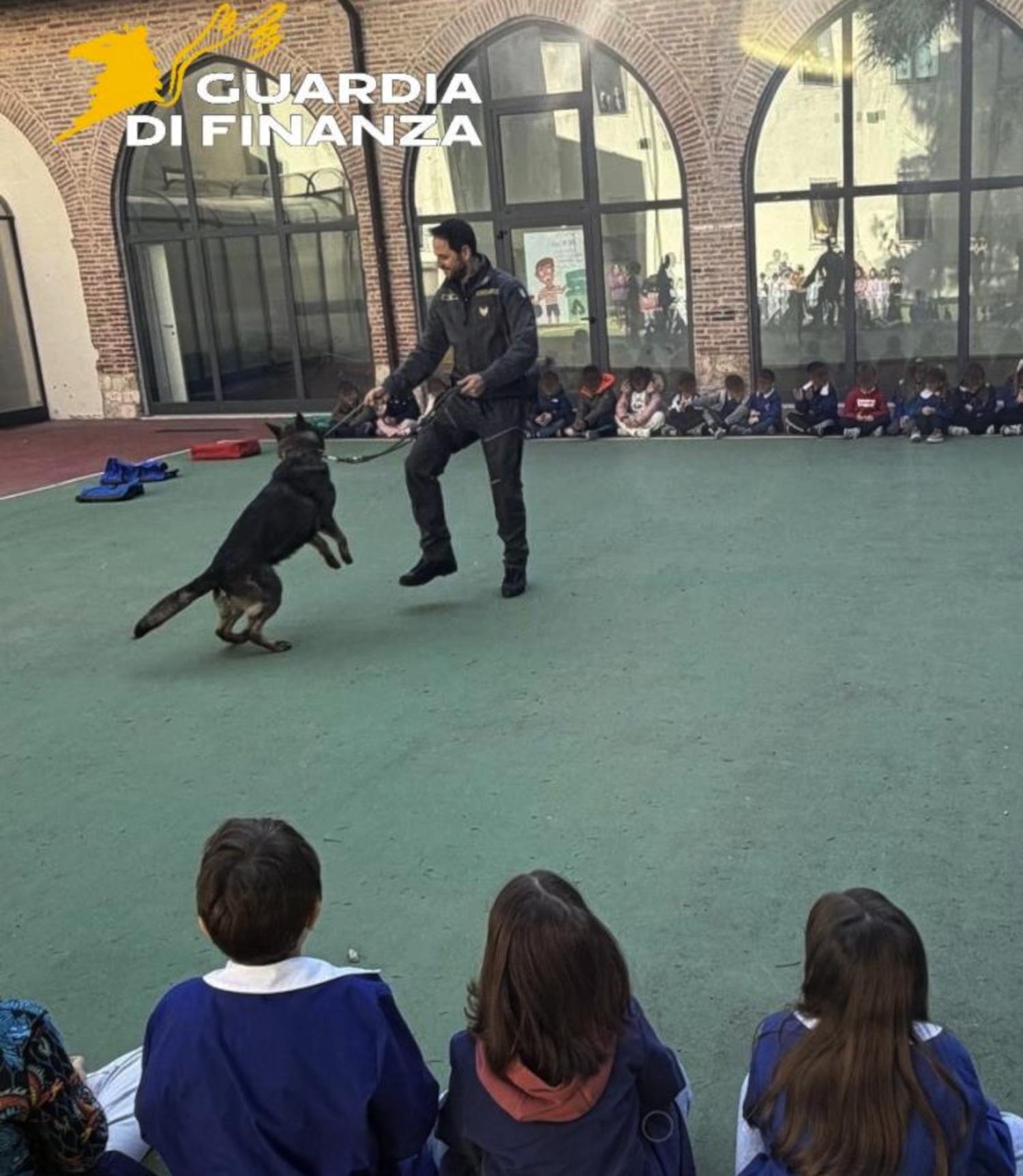 In queste occasioni è stata proposta anche una dimostrazione dei controlli antidroga effettuati con l’impiego dell’unità cinofila “Nereo”, che ha suscitato grande entusiasmo tra i ragazzi. Attraverso simulazioni pratiche, gli studenti hanno potuto osservare da vicino l’efficacia dei cani addestrati nella ricerca di sostanze stupefacenti e comprendere l’importanza del contrasto ai reati che minacciano la sicurezza pubblica e a discapito della salute degli assuntori.