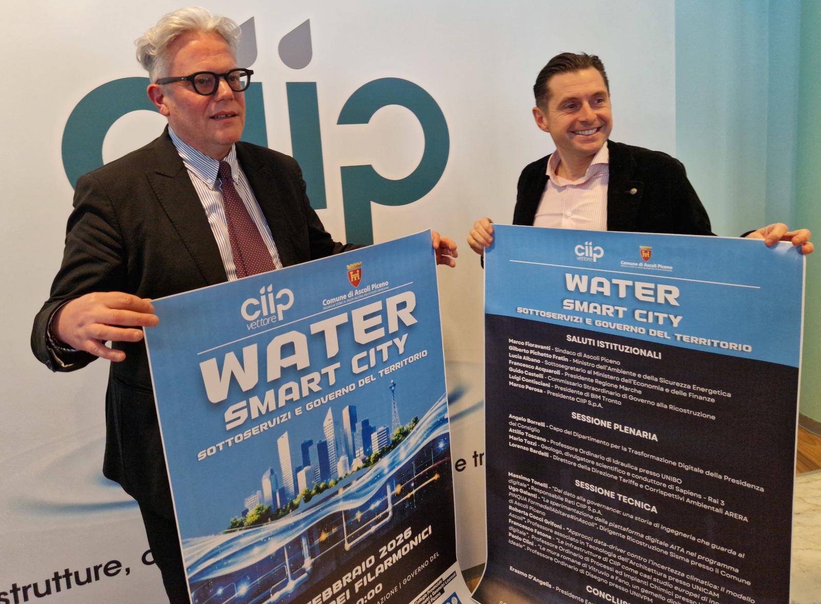 Ascoli Piceno, 19 Febbraio 2026 – È stata presentata questa mattina la giornata “Water Smart City – Sottoservizi e Governo del Territorio”, l’iniziativa promossa da CIIP S.p.A. in collaborazione con il Comune di Ascoli Piceno, che il 27 febbraio porterà al Teatro dei Filarmonici un confronto di livello nazionale sui temi della digitalizzazione delle reti idriche, della gestione intelligente dei sottoservizi e della governance urbana.
