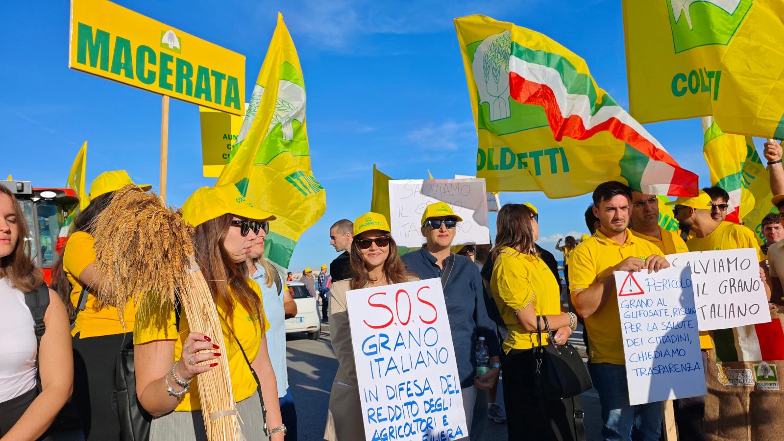 grano. Bandiere gialle e cartelli, alla protesta stanno partecipando
