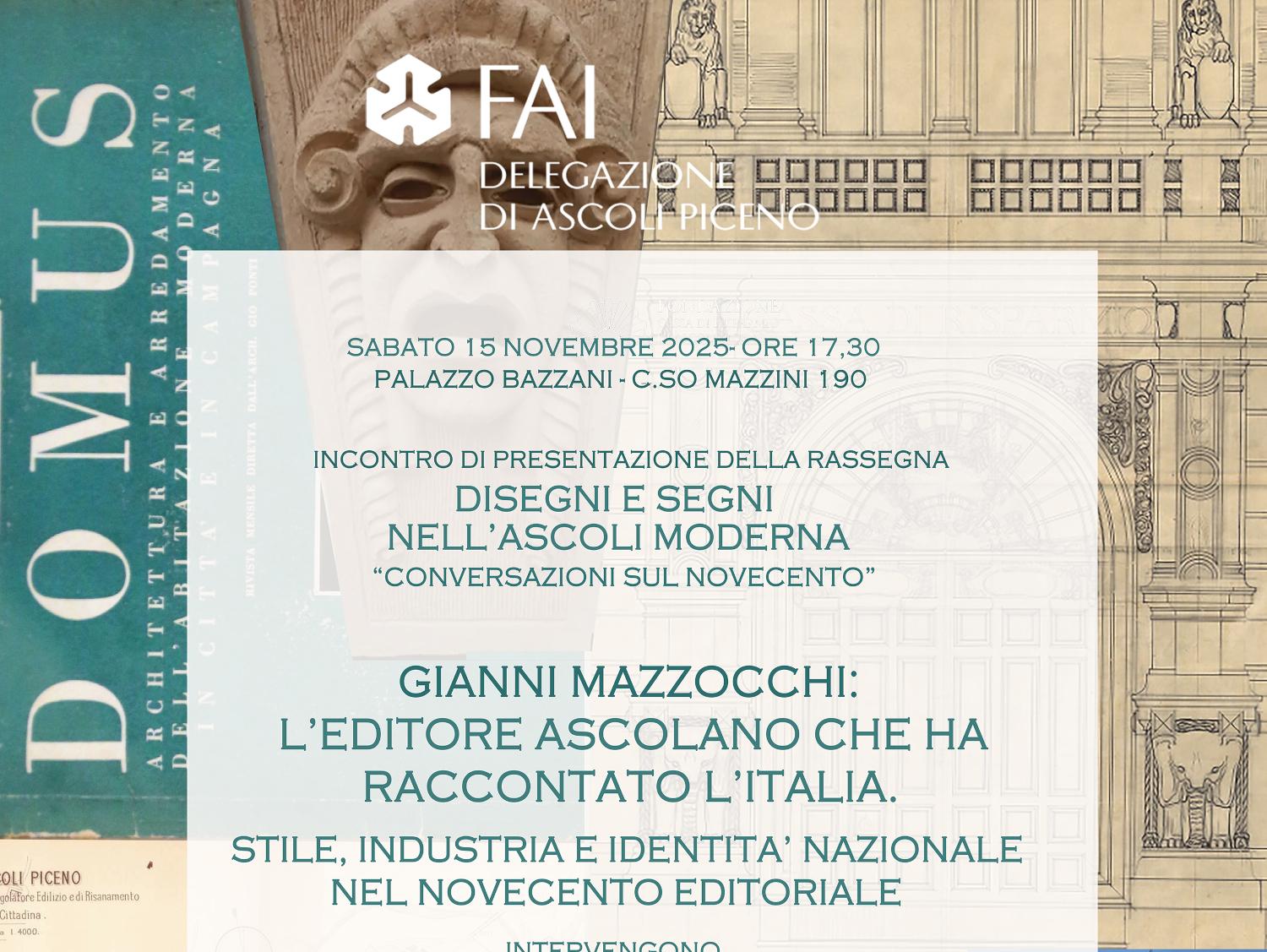 La rassegna si aprirà sabato 15 novembre alle ore 17.30 con l’evento inaugurale dal titolo: Gianni Mazzocchi: l’editore ascolano che ha raccontato l’Italia. Stile, industria e identità nazionale nel Novecento editoriale.