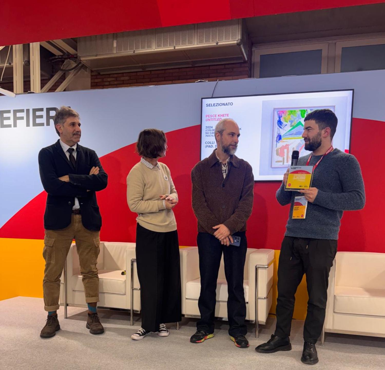 Selezione di uno dei cinque finalisti del Premio Osvaldo Licini by Fainplast nel corso della prima giornata di Arte Fiera a Bologna.